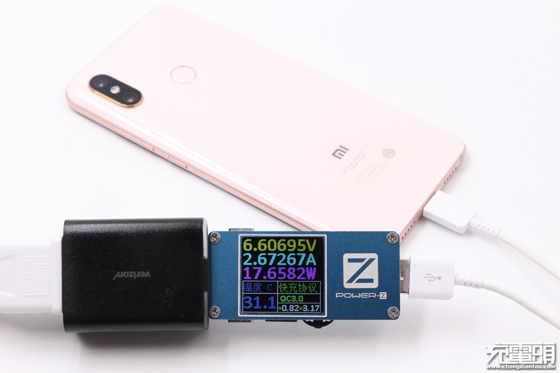 Charge Samsung Xiaomi 8, voltage 6.6V, current 2.67A, charging power 17.65W, support QC3.0 fast charge.